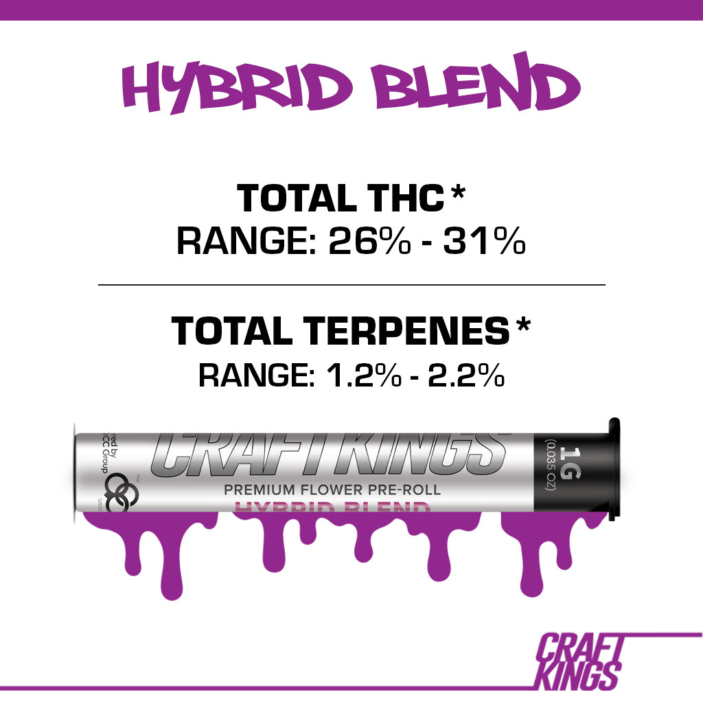 Introducing a new line of expertly blended non infused 1G pre-rolls that embody the best of the Sativa, Hybrid and Indica strain blends. Each perfectly crafted pre-roll is 100% flower for an even burn and terpene centric taste. Ideal for those seeking an elevated, pure experience, this pre-roll combines potency, quality, and craftsmanship in every puff.